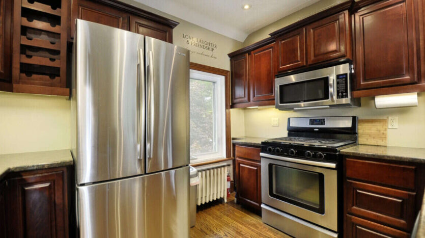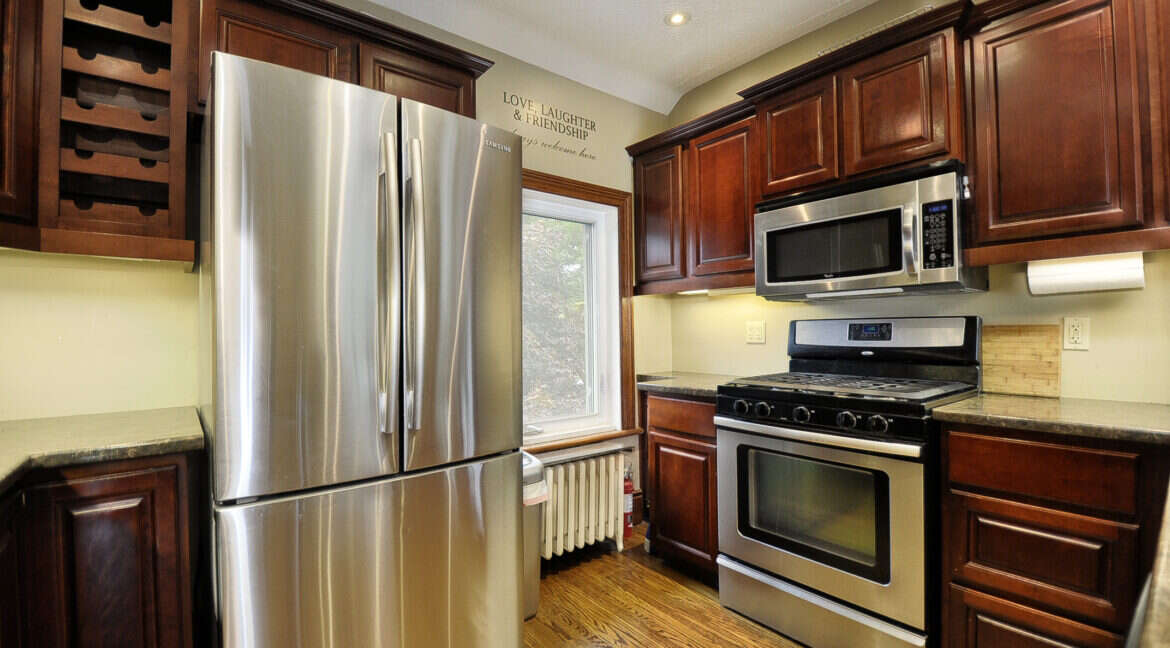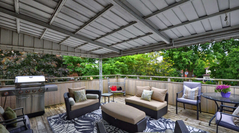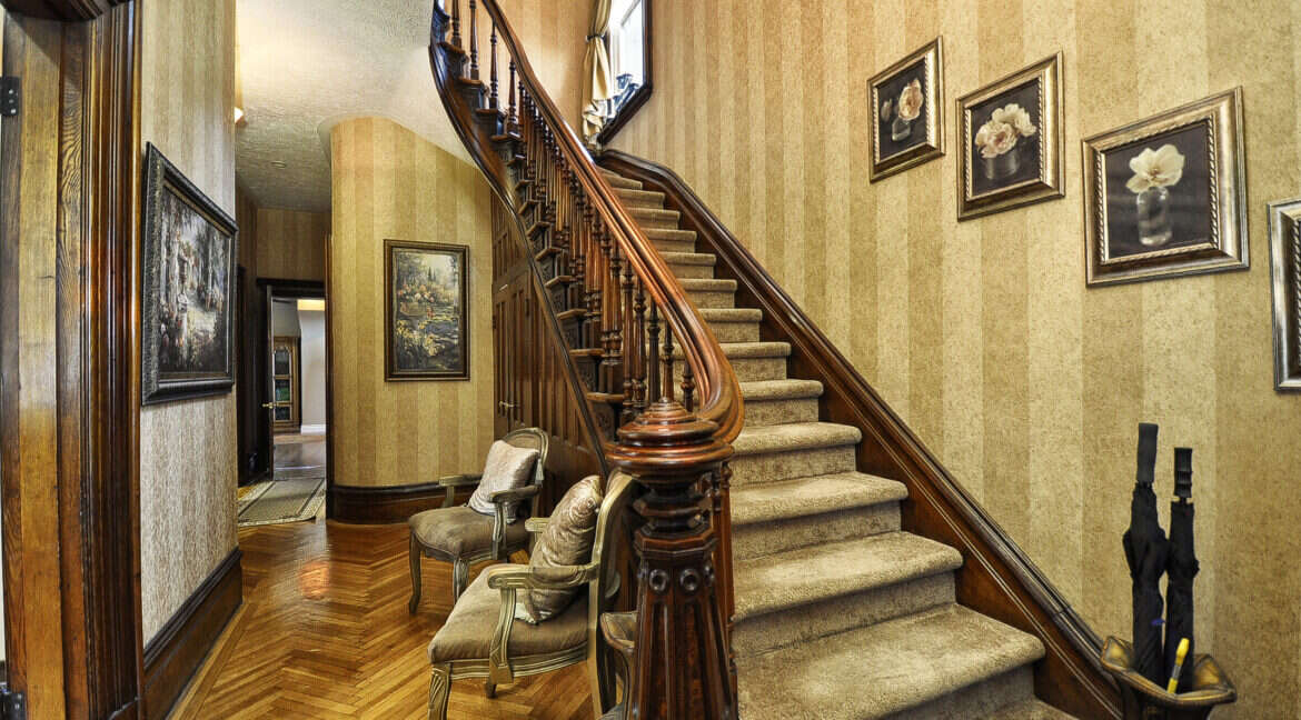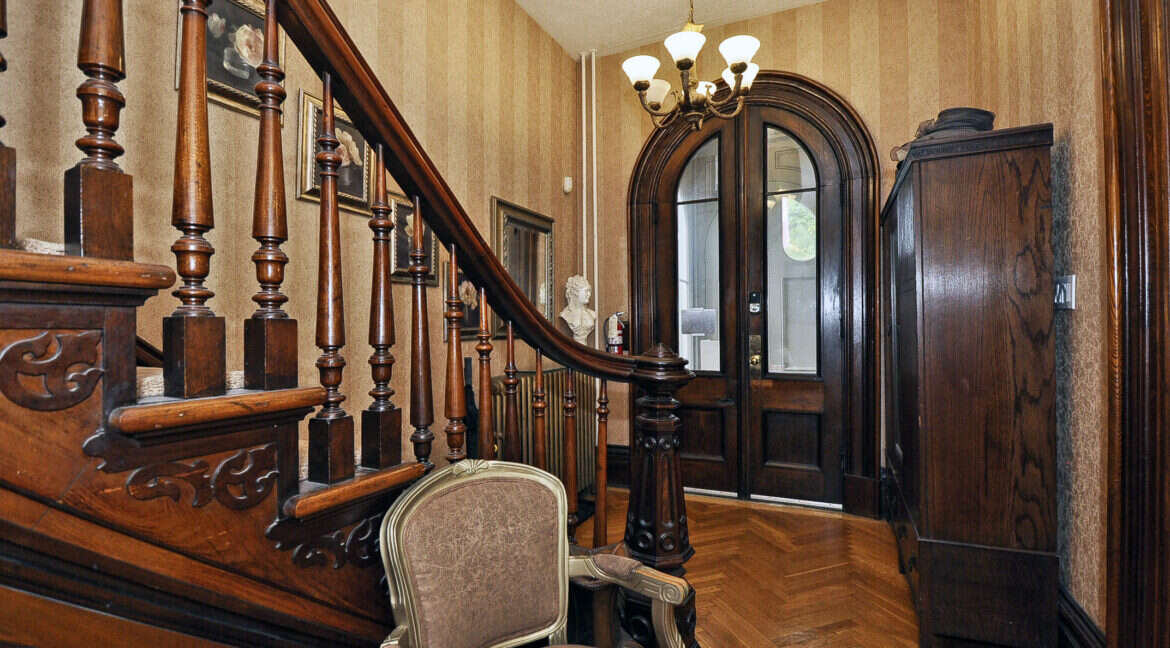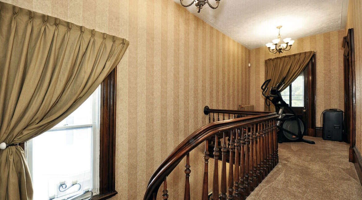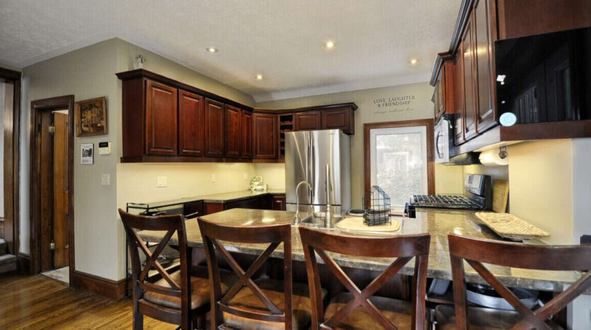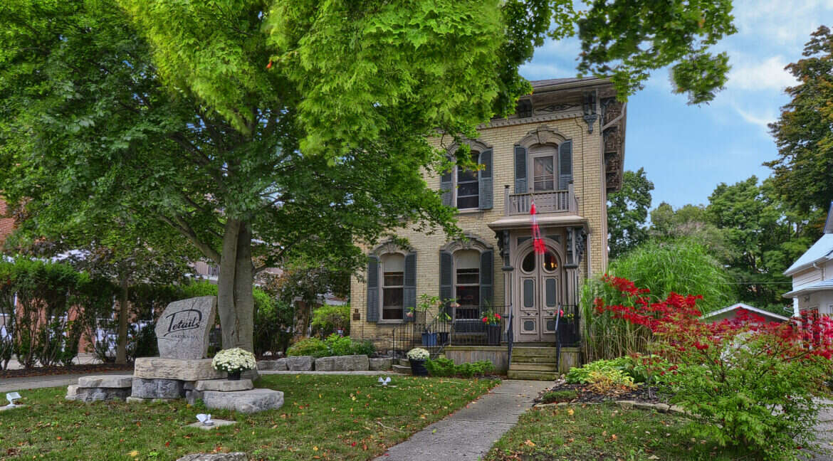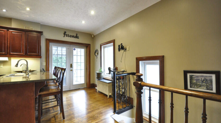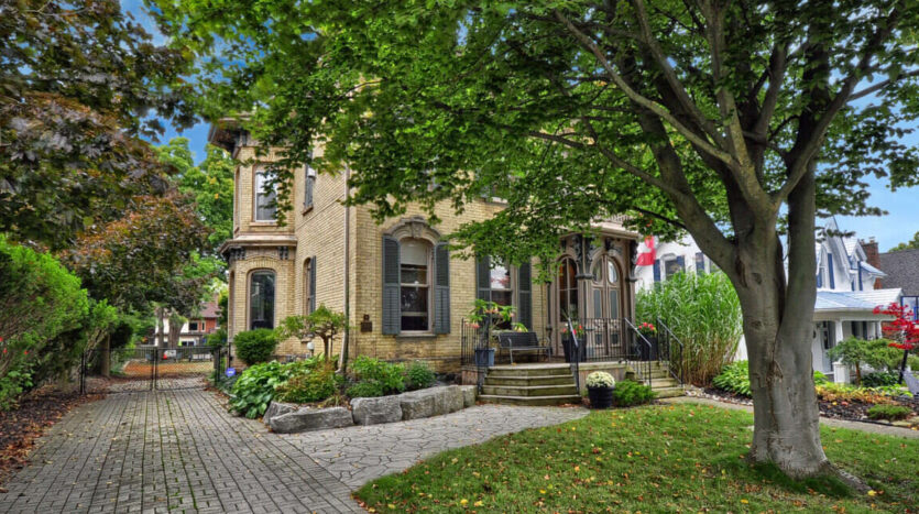 This distinctive century home, perfectly located in the heart of Woodstock, presents an extraordinary opportunity for versatile living or potential conversion into a duplex with two separate units. The main level boasts three spacious living areas, complemented by a convenient 2-piece washroom. Upstairs, the current residence features a generous living and dining area that can easily be transformed back into two large bedrooms, along with a full kitchen and bath. With soaring 11-foot ceilings on the main level and 9-foot 10-inch ceilings above, the interior showcases original details and elegant moldings that exude character and charm. Step out onto the covered rear deck, which offers direct access to the backyard, and explore the potential of the third-floor loft space, equipped with rough-in plumbing for an additional bathroom.